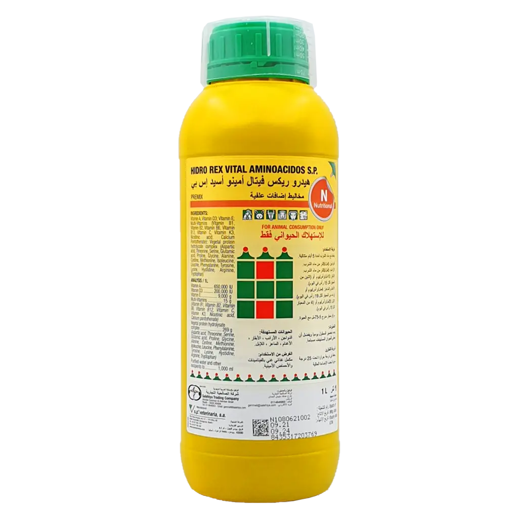 هيدروركس فيتال تركيبه متميزه من الاحماض الامينية الاساسية فيتامين ب مركب وفيتامين اد3ه منشط نمو للفراخ البيضاء و رافع مناعة و أفضل علاج لزيادة إنتاج البيض فاتح للشهية