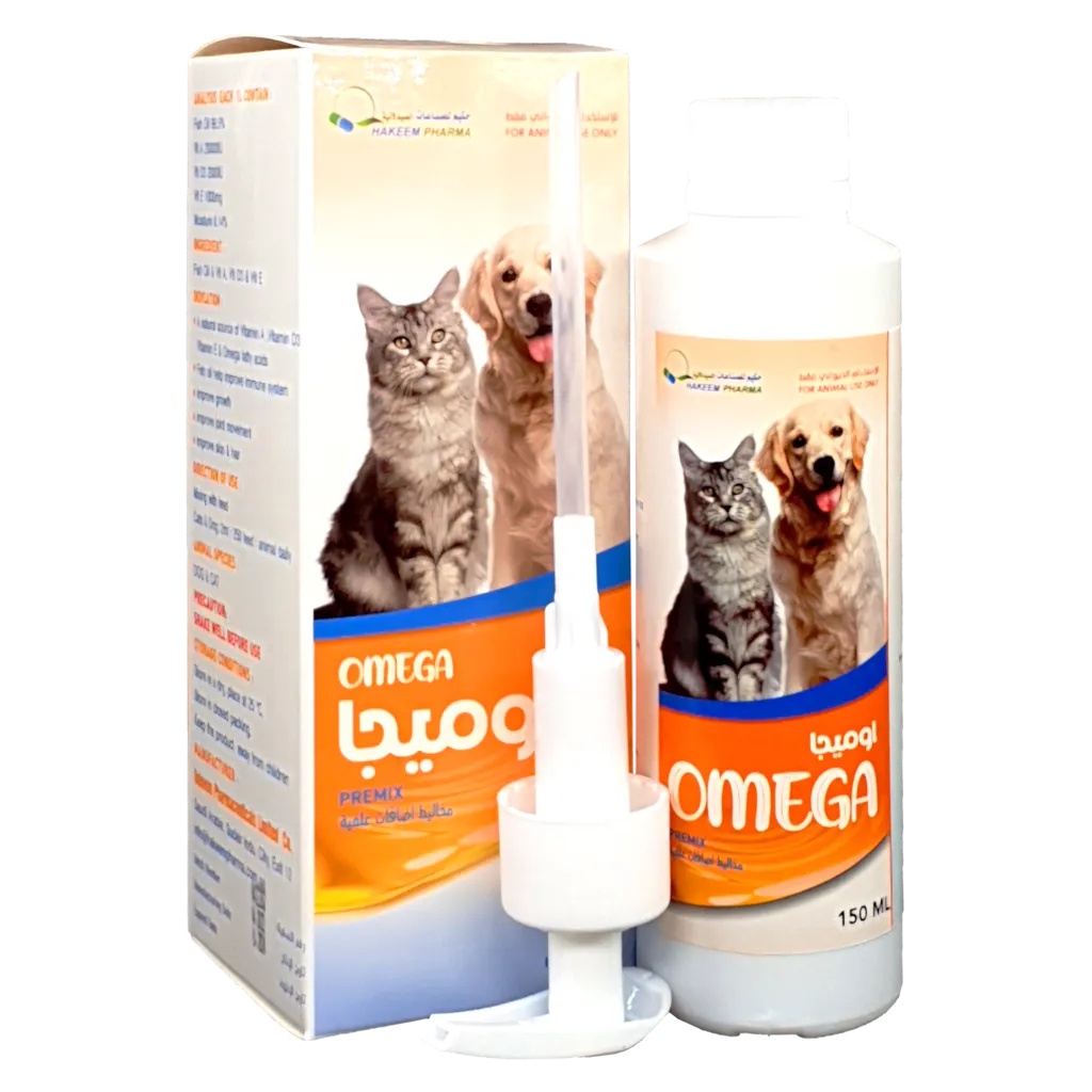 اوميجا هو مكمل غذائي للقطط والكلاب يحتوي على زيت سمك (99.5%) مع فيتامينات أ، د3، هـ لتعزيز المناعة، وصحة المفاصل، وجودة الشعر في الكلاب والقطط. تجد المزيد من التفاصيل عن المنتج في الوصف التالي..