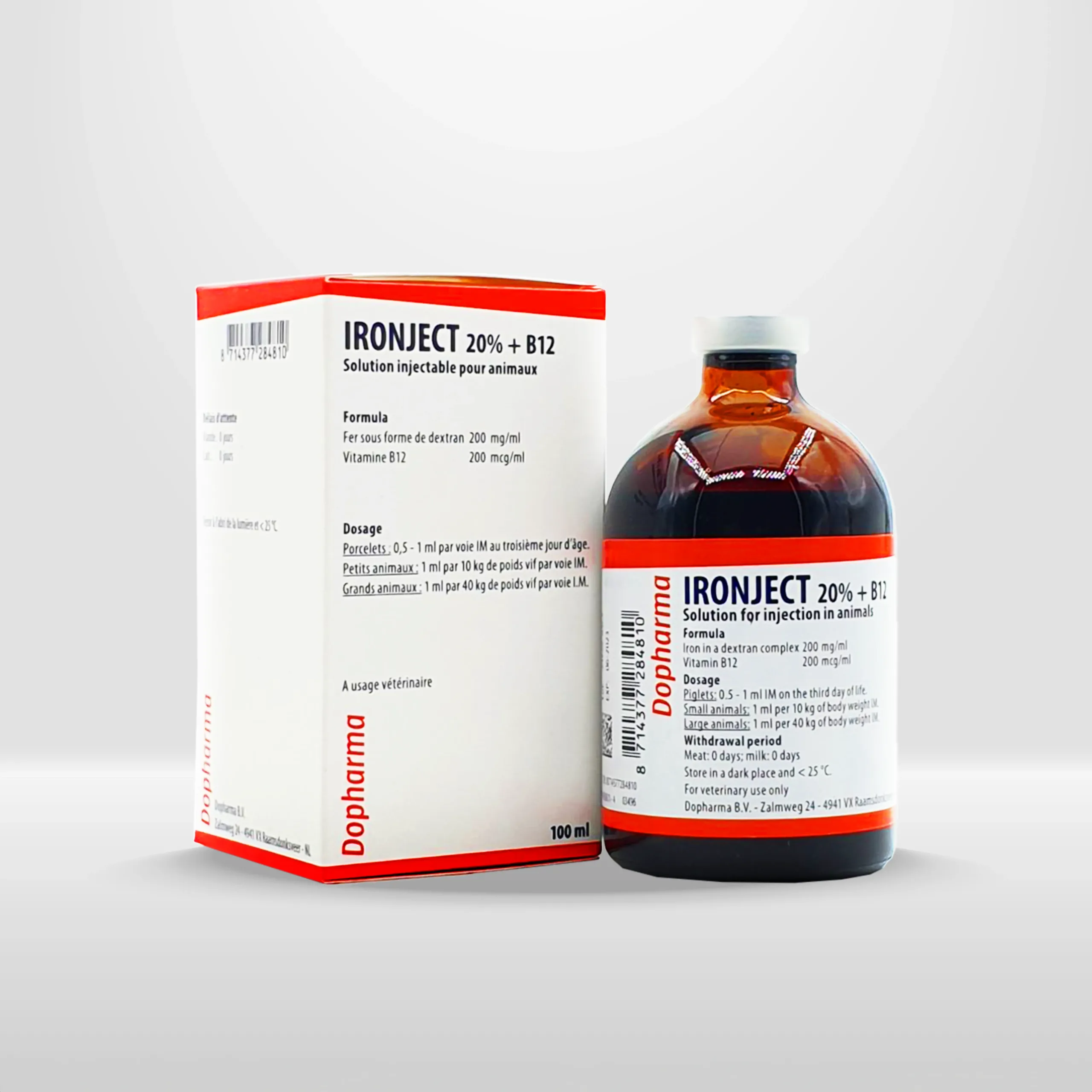 ايرونجكت 20- ب12 أفضل أنواع ابر حديد وفيتامين ب 12 فعال في علاج فقر الدم (الانيميا ) الناتج عن نقص الحديد و نقص فيتامين ب 12 في الاغنام والابقار والابل والخيول والعجول والحملان