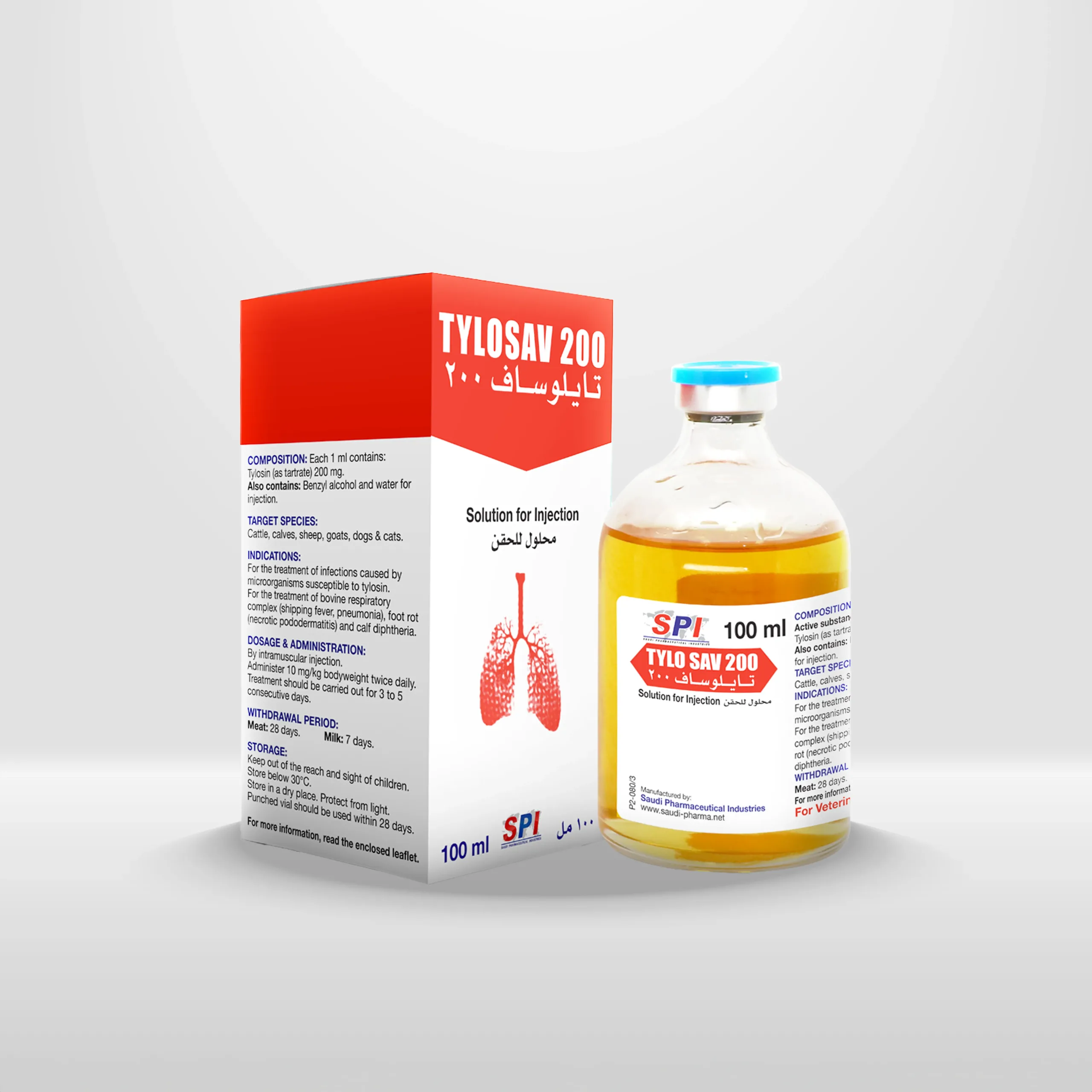 تایلوساف 200 أفضل مضاد حيوي للجهاز التنفسي في الابقار والاغنام والقطط والكلاب يحتوي علي تايلوزين بيطري الذي يستخدم في علاج الالتهاب الرئوي في المواشي و علاج ابو رمح وخناق العجول