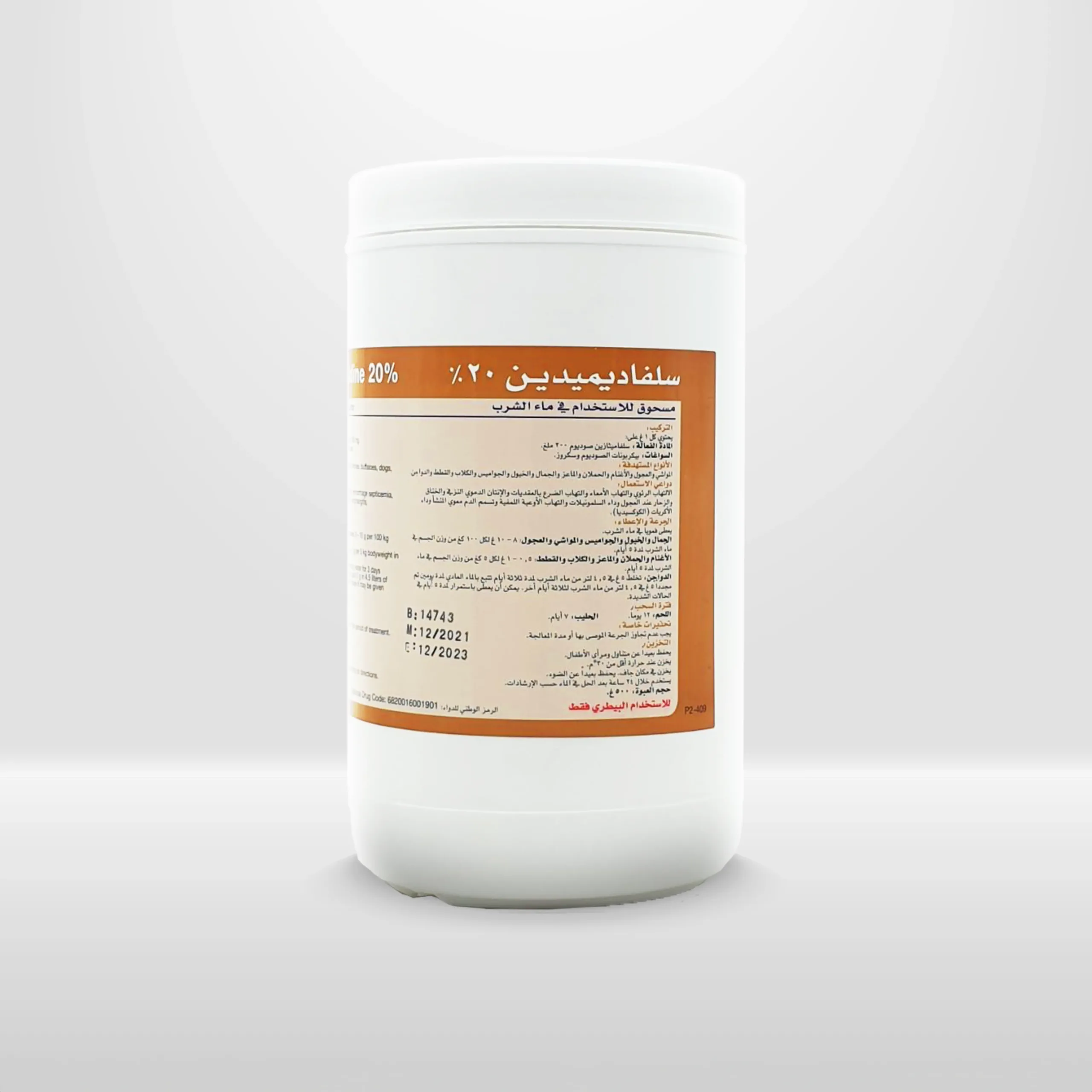 يحتوي كل 1 جم سلفادیمیدین ۲۰٪ ( سلفا بيطري )على: