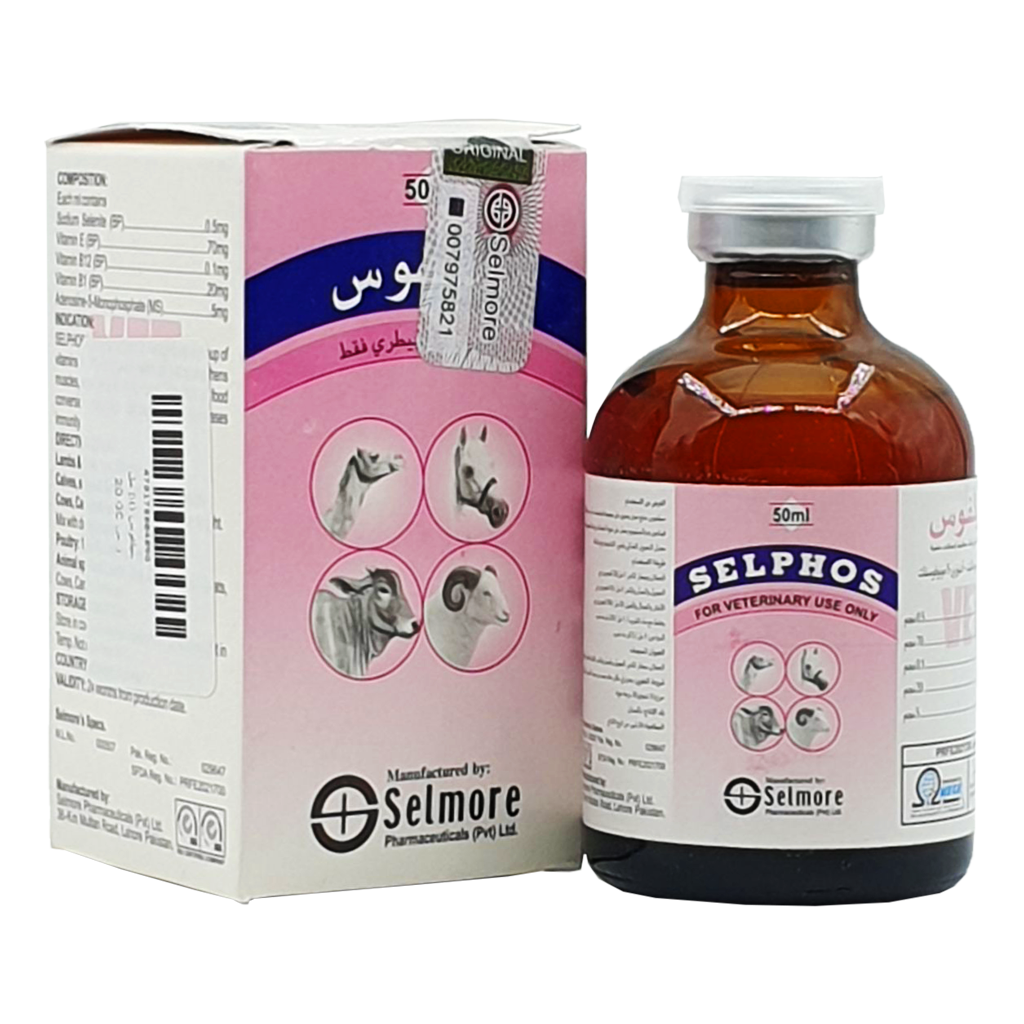 سيلفوس يحتوي على مجموعة فيتامينات ب 1 و ب 2 بالإضافة الي فيتامين هـ سلينيوم يعمل على تقوية العضلات وزيادة الخصوبة وتحسين معدل التحويل الغذائي وتعزيز الانتاجية ورفع المناعة .