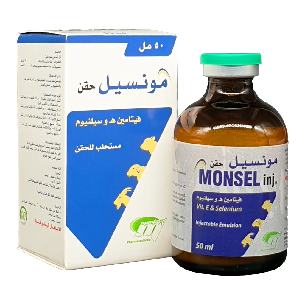 يعد مونسيل واحد من أنواع فيتامين ه سيلينيوم بيطري المتواجدة في الأسواق البيطرية ويستخدم علاج مونسيل للتعامل لمنع حالات نقص فيتامين هـ والسيلينيوم في الحملان والعجول وعلاجها.